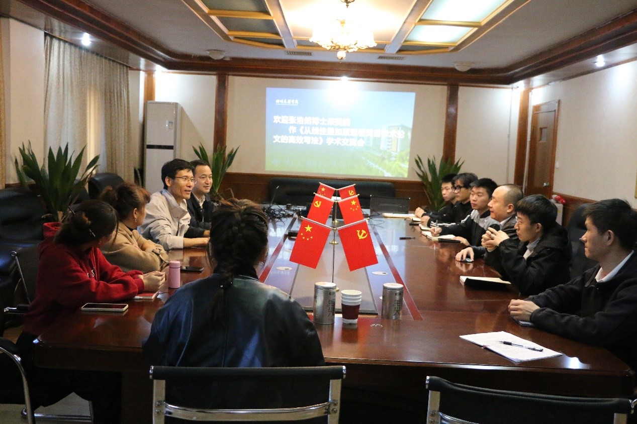 11月10日,公司于致远楼301会议室邀请四川师范大学的张浩然博士作“从线性叠加原理看英语学术论文的高效写法”的学术交流会,参会人员有公司党委书记李涛、经理陈光平和部分博士以及员工代表。此次会议旨在为公司师生提供一种高效英语学术论文的高效写法,帮助老师们在撰写高水平科研论文中突破语言关。