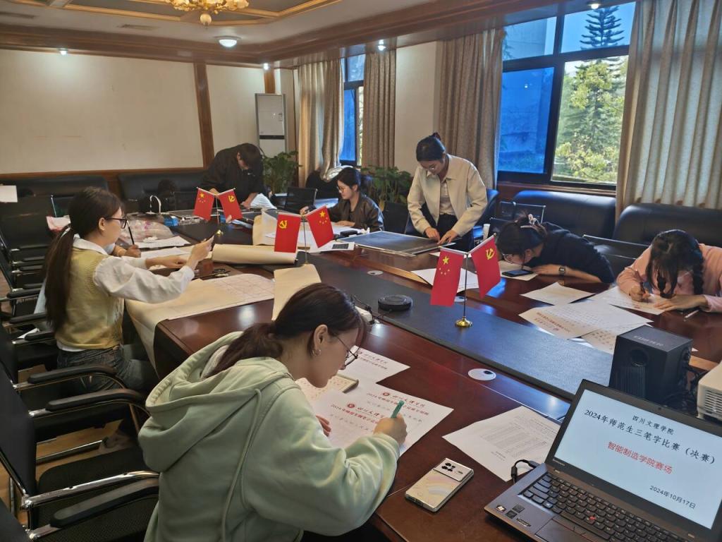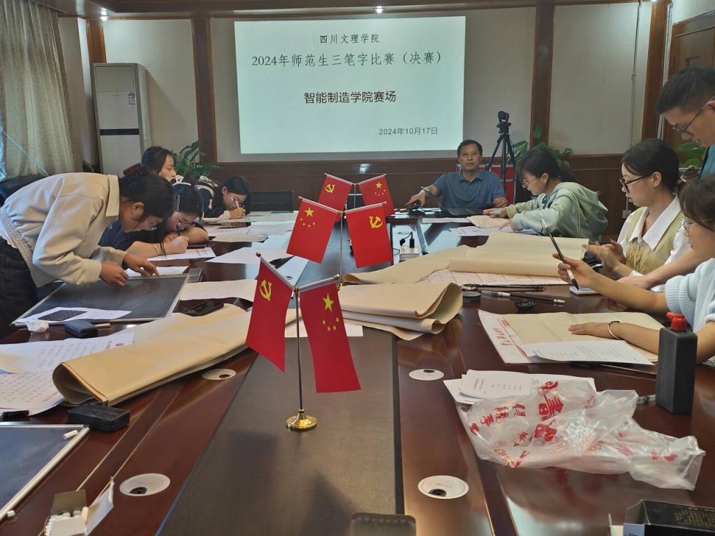 由太阳成集团tyc7111cc举办的2024年师范生三笔字比赛本周开赛,太阳成集团tyc7111cc分赛场于2024年10月15日举行初赛,经过初赛选拔,12名员工进入决赛,决赛于10月17日在南坝校区弘远楼301会议室举行。本次决赛以“笔墨飘香满校园,三笔大赛展风采”为主题,项目包括钢笔、毛笔、粉笔字的书写。此次比赛由户永清、李强、杨志豪、江明全四位教师担任指导。