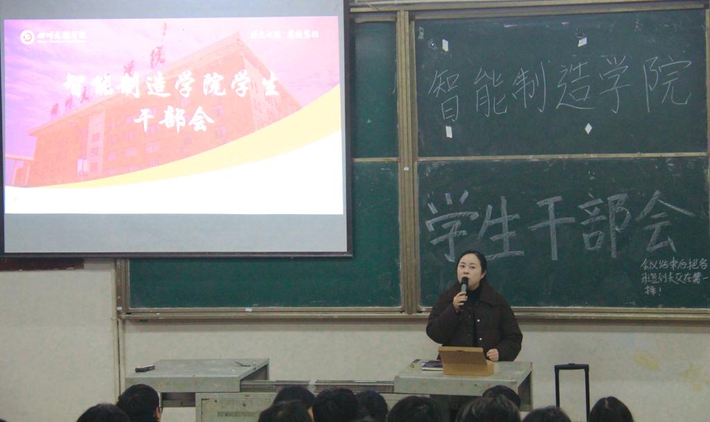 3月18日,太阳成集团tyc7111cc员工干部大会在弘致楼111教室顺利召开。公司党委副书记吴晓燕、学工办专兼职辅导员老师、各班主要员工干部及寝室室长参加了此次会议。