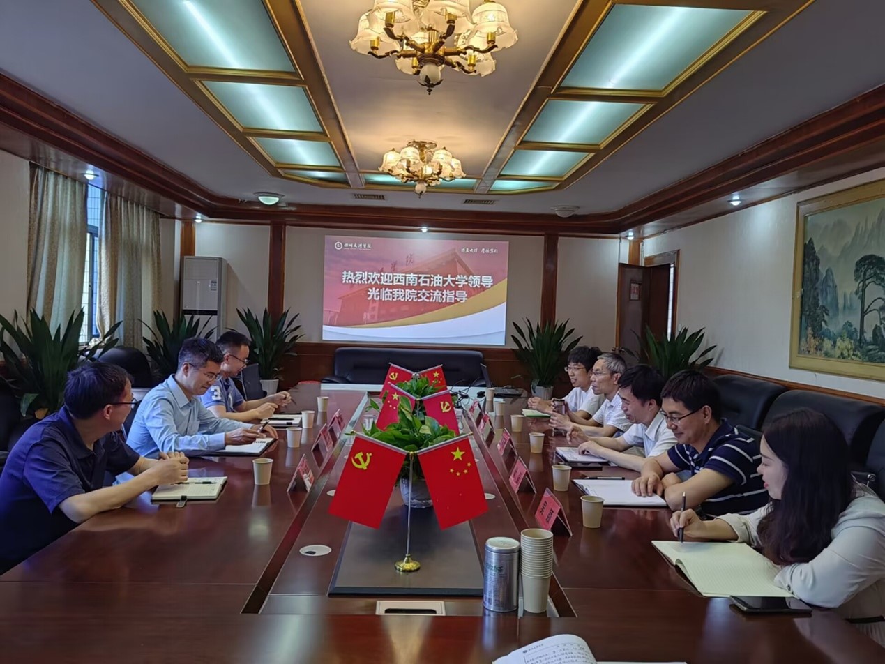 5月18日下午,西南石油大学机电工程公司副经理蔡灿、经理助理林伟、教研室主任冯文荣等一行人到公司进行交流考察。太阳成集团tyc7111cc教学副经理刘笃晋主持会议,机电教研室主任肖辉进、副主任曾强及吴颖、谢锐等老师参加会议。