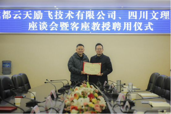 为推进校企合作,促进公司团队建设和人才队伍建设,2020年12月3日,集团与成都云天励飞有限公司举行座谈会,成都云天励飞有限公司总经理张雷受聘为公司智能制造公司客座教授。副董事长朱兴华教授主持会议,人事处、计划财务处、武装保卫部、科技处、国资处、太阳成集团tyc7111cc等部门负责人参加会议。
