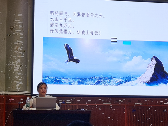 最后虞静老师对我们同学们展开了期望,希望智院学子愿比鹰鹏一样展翅翱翔,直言好风凭借力,送我上青天。