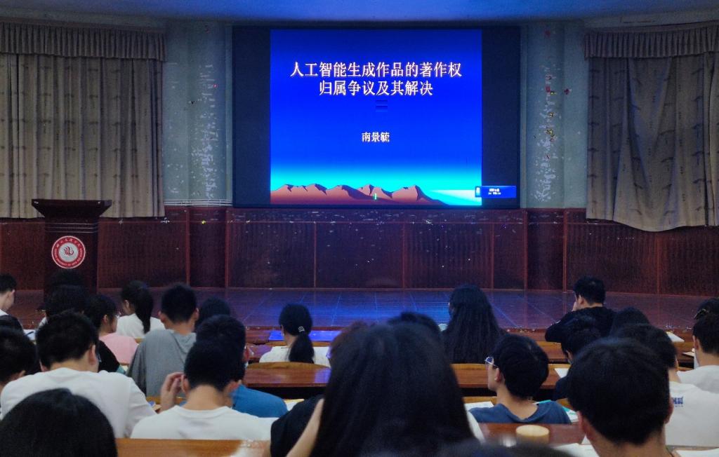 5月30日晚上,太阳成集团tyc7111cc邀请政法公司南景毓副教授在老校区学术报告厅开展有关《人工智能生成作品著作权归属争议及其解决》的专题讲座,公司2021级部分班级员工现场聆听。