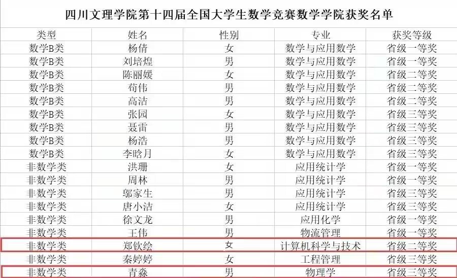 热烈祝贺取得优异成绩的两位学子,希望同学们以两位学子为榜样,在今后的比赛中,突破历史,再创新高!