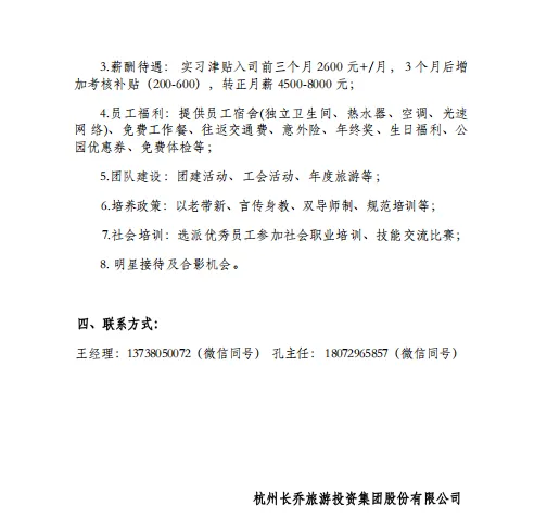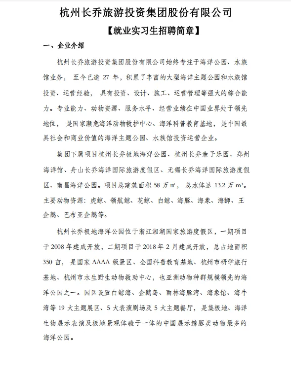 杭州长乔旅游投资集团招聘(川文理[就]00027)