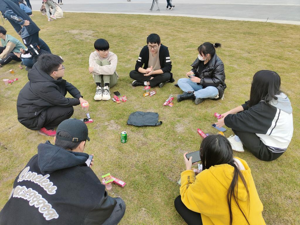 最后,大家随机分成四组,一起玩谁是卧底、狼人杀,一起吃零食,每位同学都完全地融入集体之中。
