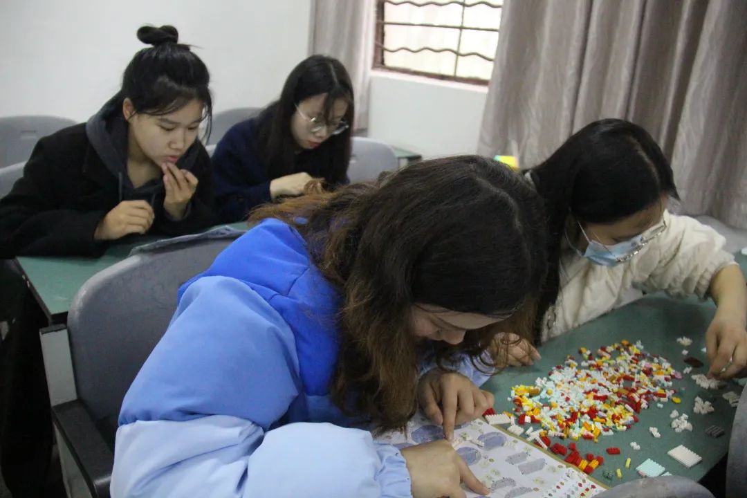 活动从开始到结束,参与者都积极的投入到积木人偶的拼接中,现场气氛十分活跃,有的组选择先对局部零件进行分类,而有的组直接对积木整体进行拼接。一个个颜色不同、长短不一的积木在一双双灵动的手中拼接成心造的蓝图,这是对智慧、耐心与信念的三重考验。最终在几个小时的同队携手努力下,大家都陆陆续续的完成了对积木的拼接。