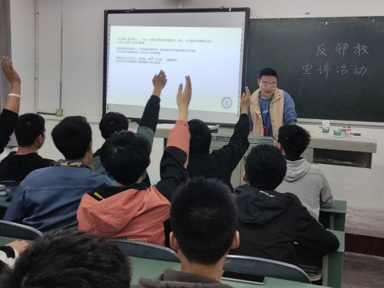 在宣讲活动过程中讲解员与同学们进行了深入地互动,增强了同学们反邪教的积极性,营造了积极反邪教的氛围。同时工作人员也对部分同学进行了互动奖励,进一步增强了员工与公司部门之间的联系。