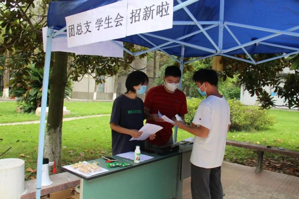一、10月2日上午,四老员工组织分别开展了第一阶段的部门宣传工作,其中团总支员工会在中心花园设立了招新工作点,不仅准备了部门宣传单和报名表,还为前来了解部门情况的新同学们准备了各种零食和饮料。