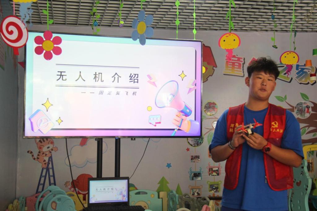 活动开展期间,团队由社区负责人进行接待,共同完成场地布置和工作安排,提前制作的飞机、轮船等模型吸引着小朋友们的目光。成员主动为他们介绍每种模型的使用方法并将前来听课的小朋友分为两组进行授课,活动现场轻松愉快。