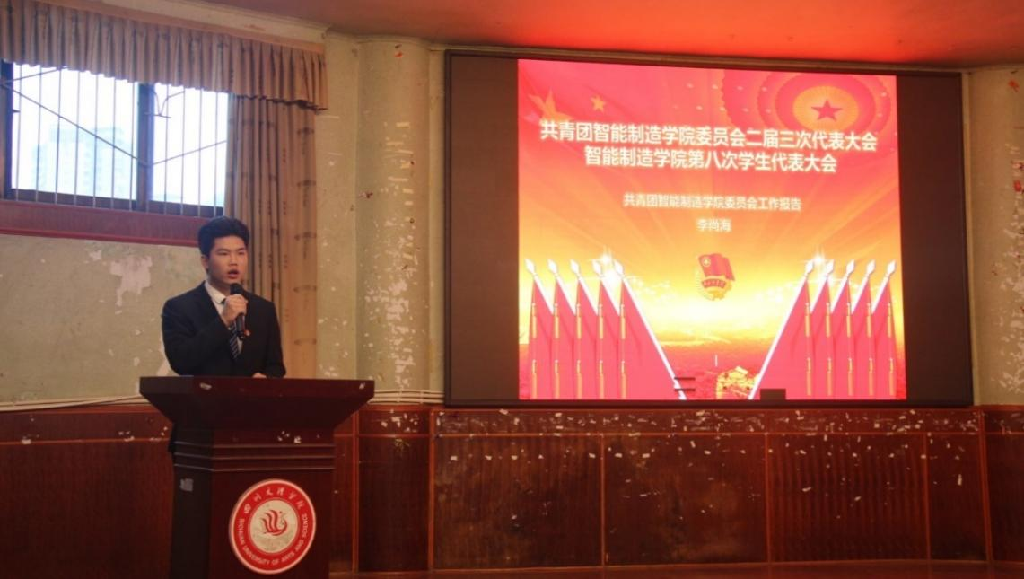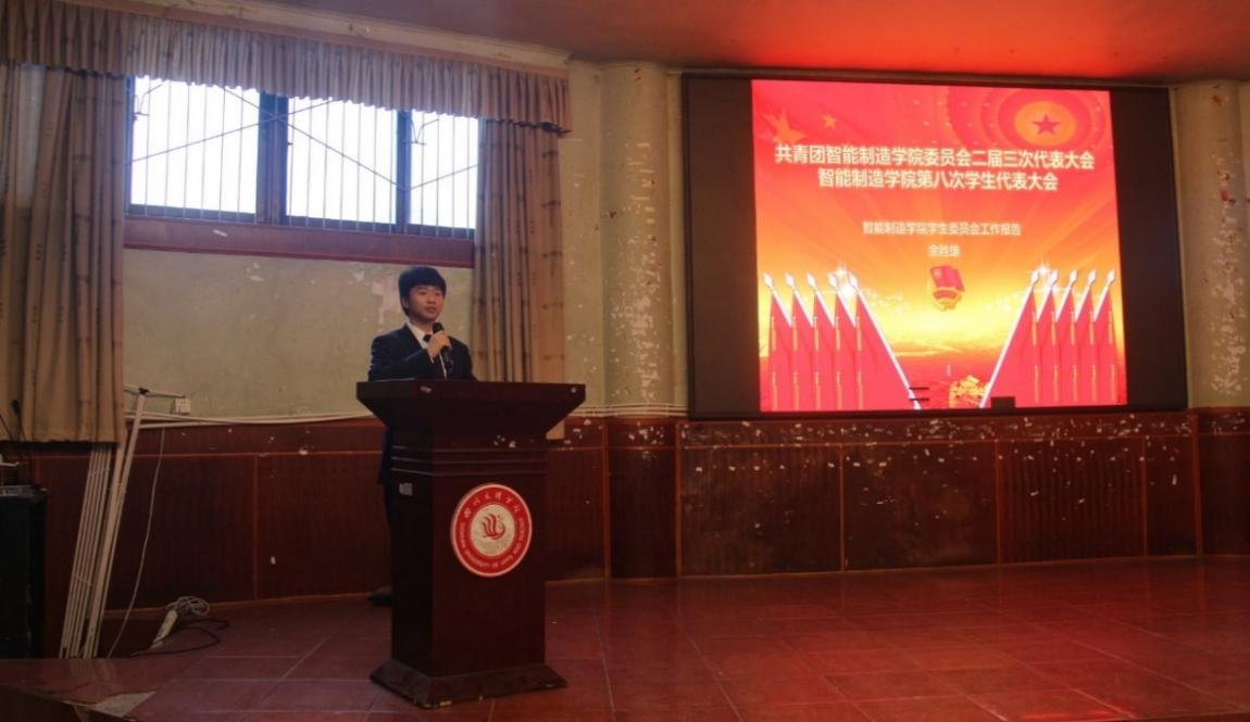 李尚海代表共青团太阳成集团tyc7111cc团总支向大会作题为《艰难困苦创新高,玉汝于成铸辉煌-挺膺担当、做有理想、敢担当、能吃苦、肯奋斗的新时代青年人》的工作报告。