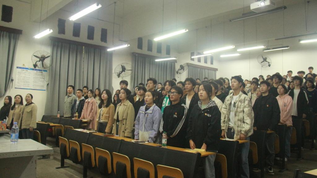 会议伊始,团学办公室首先对参会人员进行了严格的考勤,各部门随后清点人数,并详细汇报了缺勤人员的名单及具体原因。紧接着,会议进入第一个环节,全体人员齐唱团歌。洪亮的歌声回荡在教室中,老师与同学们庄严肃穆,共同表达了对共青团事业的认同和热爱。