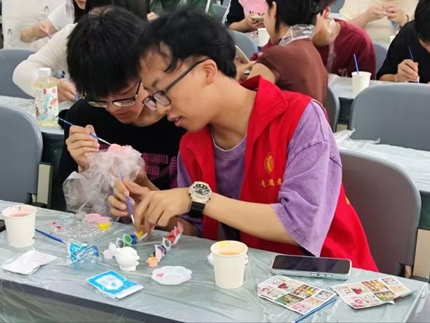 在“石膏娃娃DIY”活动中,一场无声的心理旅程悄然开启。提笔前的构思,是自我表达欲的萌芽;上色时,细腻的笔触流淌着耐心与专注,色彩的碰撞则映射着情绪的起伏;完成作品的瞬间,成就感与自我认同感油然而生,小小的石膏娃娃,成了探索潜意识与情感世界的独特载体。同学们在活动中放松了心情,释放了压力。