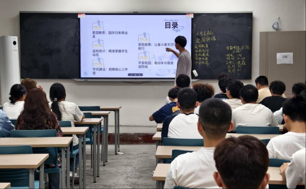 安全与权益保障成为班会另一重点内容。在校园交通安全方面,各班重点强调电动车规范骑行,要求员工遵守“安全至上、行人优先”原则,做到佩戴头盔、不违规载人、规范停放;在员工权益与管理上,班会详细解读奖助学金评定标准与申请流程,确保政策公开透明;同时组织2025级新生学习学籍自查流程,提醒于10月31日前登录学信网核对个人信息,保障学籍注册准确无误。