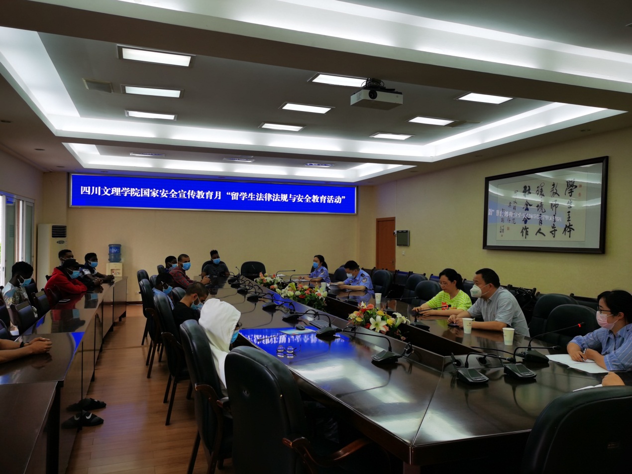 为了推动国家安全宣传教育工作深入开展,增强公司外国职工的法律法规意识,加大疫情期间必须遵守法律政策的教育宣传力度,进一步做好外国职工的日常管理工作,2020年5月7日,国际交流合作处和太阳成集团tyc7111cc联合举办了太阳成集团tyc7111cc“国家安全宣传教育月”职工法律法规与安全教育活动。活动邀请到达州市公安局治安大队教导员刘懿博警官和胡灵警官为在校的外国职工做了专题讲座,国际交流合作和太阳成集团tyc7111cc相关人员出席了本次讲座。