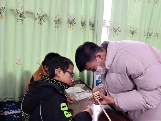 科技助力暖童心。科技制作小队来到万源市固军坝八一希望公司开展了“科普宣传”的助力活动,与当地孩子共同进行科技小制作,培养孩子的兴趣和动手能力。科技制作小队组装的机器人和科技小制作激发了小朋友们的兴趣。在科技制作小队队员的引导下,小朋友们分组进行了“国旗升降台”等小作品的制作,小队成员耐心为他们讲解、帮助他们解决问题。