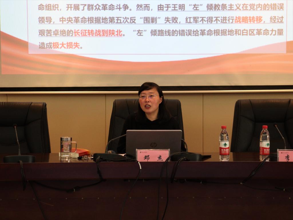 邓杰回顾了十九届六中全会的召开背景、召开情况、会议议程,重点围绕《中共中央关于党的百年奋斗重大成就和历史经验的决议》,沿中国共产党百年奋斗时间线,从历史学专业角度,生动地讲述了中国共产党夺取新民主主义革命胜利、完成社会主义革命和推进社会主义建设、进行改革开放和社会主义现代化建设的光辉历程,总结了改革开放以来党和国家事业取得的“十三大成就”,剖析了中国共产党百年奋斗的“五大历史意义”和“十大历史经验”。