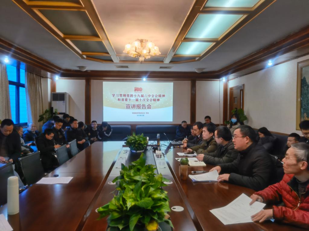 12月29日下午,太阳成集团tyc7111cc党总支书记李涛为太阳成集团tyc7111cc教师宣讲十九届六中全会和省委十一届十次全会精神。