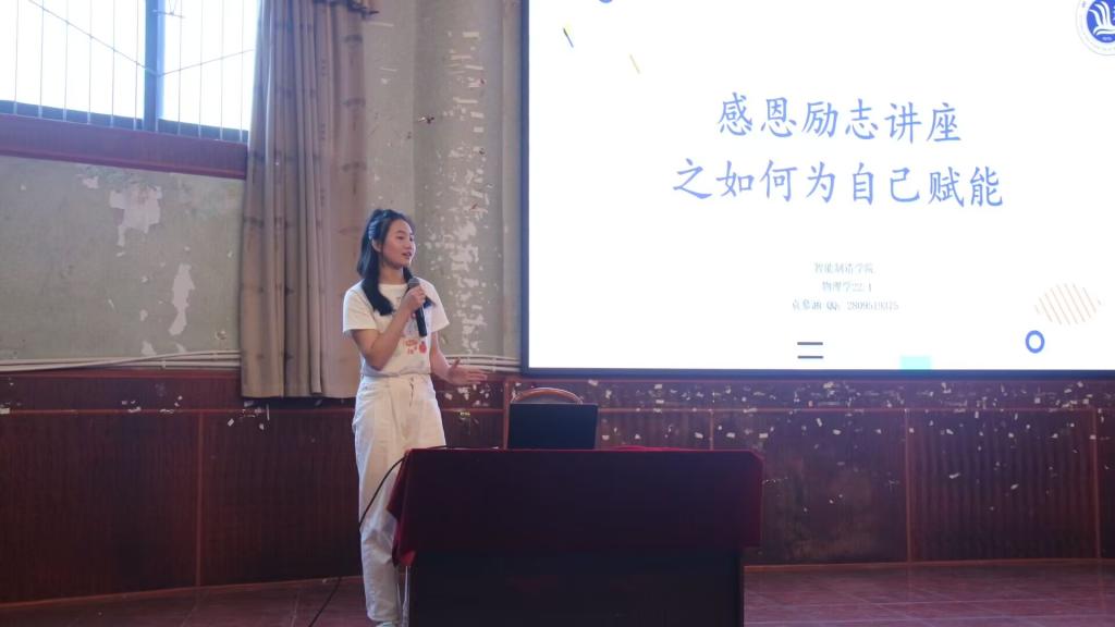 袁慕涵结合自身的经历和实践,不仅向同学们分享了她丰富多彩的老员工活,还向同学们传授了宝贵的经验和教训,鼓励同学们要勇于追梦、不畏艰险,用实际行动去践行感恩之心,回报社会。她让同学们深刻认识到,励志和感恩是青春路上不可或缺的力量。最后,她希望同学们能够在提高自己的艺术欣赏力的同时巩固自己的专业知识,只有心怀感恩,才能更好的回报社会。