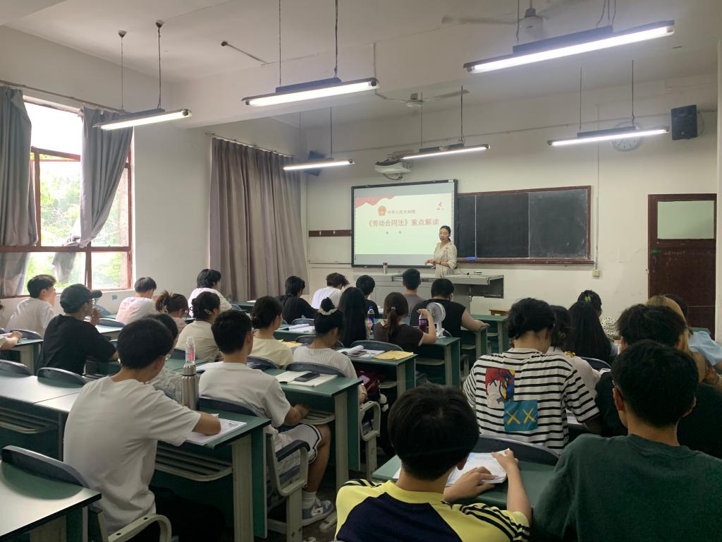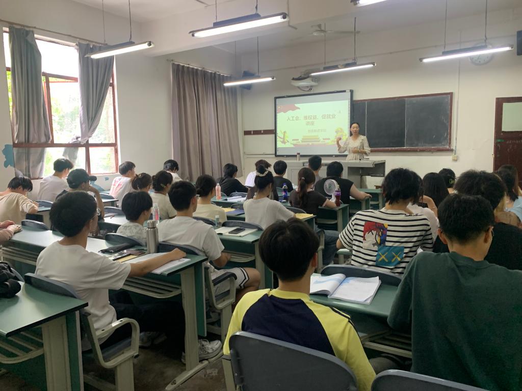 太阳成集团tyc7111cc学工办主任、分工会委员苗芳在211教室给50余名同学做了工会基础知识讲座,讲解了《工会法》、《劳动合同法》等,让同学们了解工会的性质、任务、作用及入会十大好处等知识,帮助公司同学在未来的创业、就业过程中增强维权意识,尽快地适应社会。