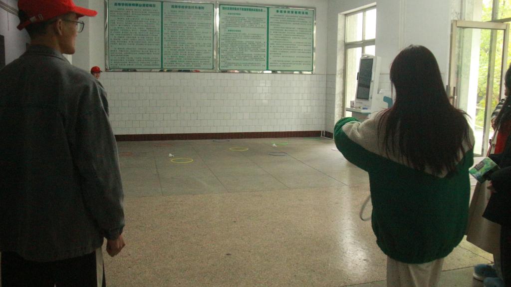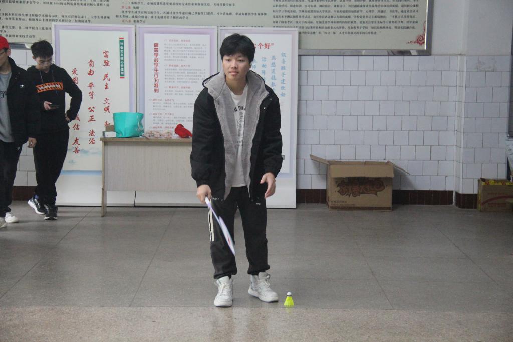 第二个活动是“定点击球”,同学们在工作人员处领取了三个羽毛球,只要将羽毛球打出去落到对应的圈内即可获得相应的奖品,该项活动也激发了同学们极大的热情,纷纷拿起手中的羽毛球向指定区域打出。通过“定点击球”的活动,旨在培养同学们不怕吃苦、勇于拼搏的精神,同时也增加了同学之间的友谊,以及展现自我的运动风采,使同学们在运动中释放出了内心的压力与久违的激情和活力。