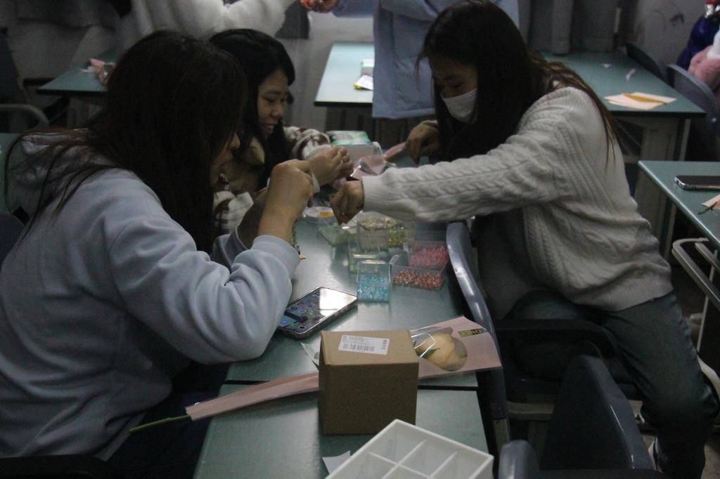 在最后一个“手链DIY”活动中,同学们发挥自己的想象力,将各种颜色和款式的珠子、绳子等材料巧妙搭配,制作出美观且具有个性化的独一无二的手链。这不仅增强了同学们的动手能力,也培养了同学们的耐心和细心,通过反复尝试和调整,提升了自己的专注力和细心程度。同学们也在活动中分享创意和想法,互相帮助和学习,从而加深彼此之间的友谊和团队精神。