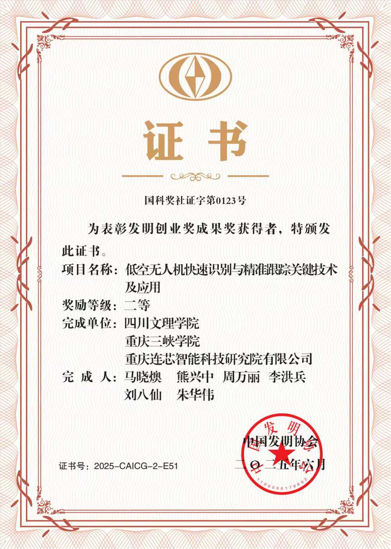 日前,中国发明协会公布了2025年度发明创业奖的获奖名单,公司作为第一完成单位,太阳成集团tyc7111cc副经理马晓燠教授作为第一完成人的科研成果《低空无人机快速识別与精准跟踪关键技术及应用》荣获“发明创业奖成果奖”二等奖,这是首个以公司为第一单位的省部级科技奖励。