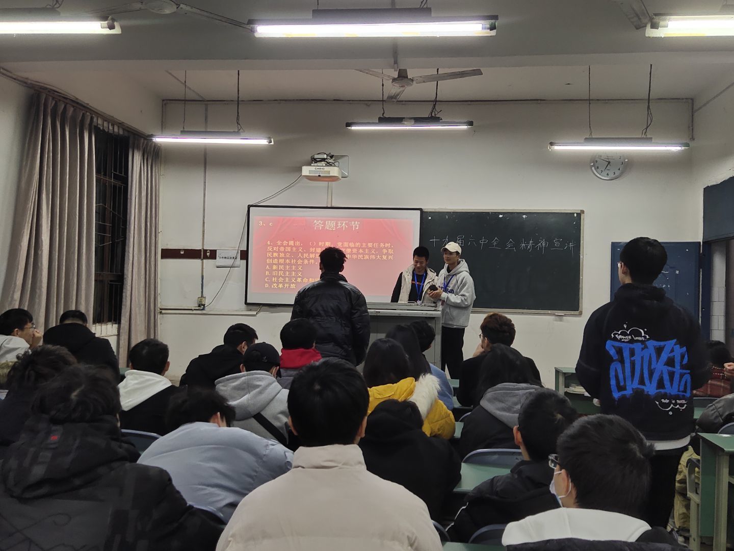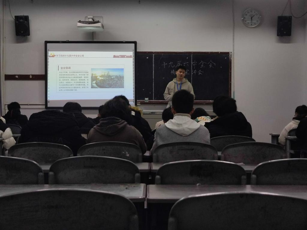 为充分发挥员工党员在思想政治引领、团结凝聚青年员工等方面的战斗堡垒作用,进一步学习宣传贯彻党的十九届六中全会精神,12月19日,太阳成集团tyc7111cc老员工党员理论宣讲团走进2020级团组织生活,为近400名共青团员宣讲党的十九届六中全会精神。