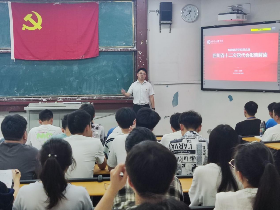 会上,首先以“四川省第十二次党代会报告解读”为主题,太阳成集团tyc7111cc党总支副书记侯翔为2022届毕业生党员上了“最后一次党课”,详细解读了中国共产党四川省第十二次代表大会报告,指出此次党代会是在迈步全面建设社会主义现代化四川新征程、喜迎党的二十大的关键时刻召开的一次十分重要的会议。勉励毕业生党员们要在知行合一中强化使命担当,以实际行动落实省第十二次党代会的精神,以优异成绩迎接党的二十大胜利召开。