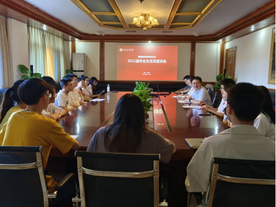 随后的毕业生党员座谈会上,毕业生党员们纷纷分享了自己在校期间学习成果与收获,介绍了近期求职或升学状况,也表达了对母校教育培养的感激之情,并表示在未来的工作岗位上将继续发挥好党员先锋模范作用,积极地奉献社会。