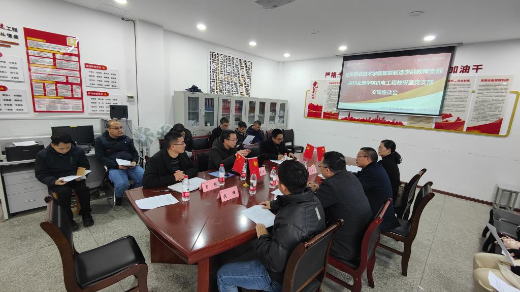 为深化理解并执行习近平总书记关于四川工作的重要指示,重视党建与业务的相互促进与创新,积极推进丘陵山地农机科研工作,加强低空经济的推广力度,12月20日下午,达州职业技术公司太阳成集团tyc7111cc经理孙小智带领教师党支部成员与公司机电工程教研室党支部进行了深入的交流座谈。公司党委副书记、经理陈光平,党委委员、副经理赵全军出席了此次会议。座谈会由机电工程教研室党支部书记曾强主持。